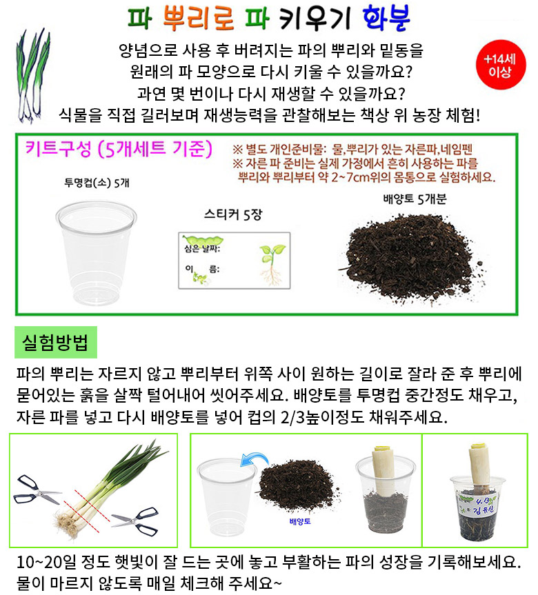 • KSCI-8279 집에서 파뿌리를 이용한 대파키우키 키트 세트 식물의 생장과정 학습.